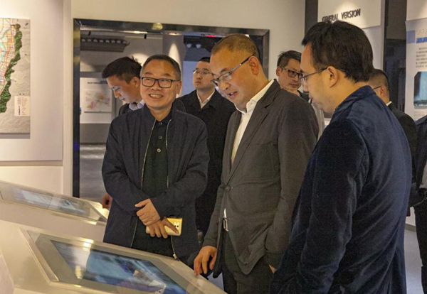張海岸董事長一行考察縣城市規(guī)劃展示館